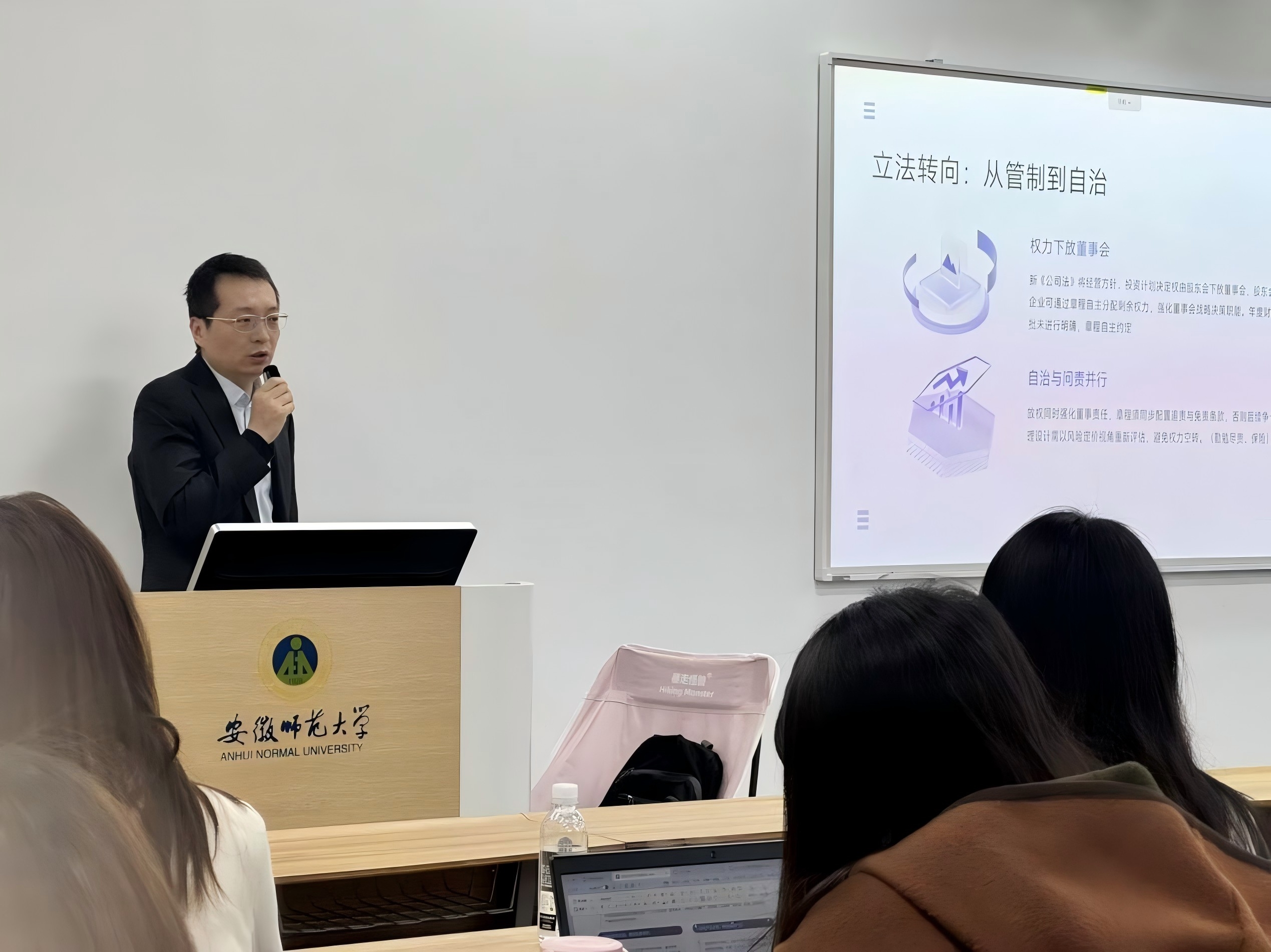 讲座尾声,刘显飞与现场师生展开热烈互动,针对大家提出的“拟上市企业对赌协议清理难点”“中小企业治理优化路径”等问题逐一解答。本次讲座不仅让师生深入理解公司治理与资本市场的联动逻辑,更搭建了校企交流的桥梁,为学生未来职业发展提供了宝贵的行业参考,获得现场师生的一致好评。