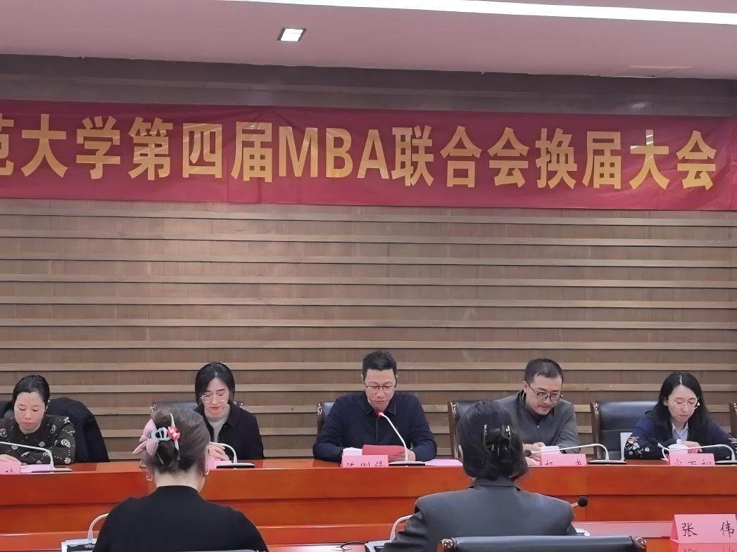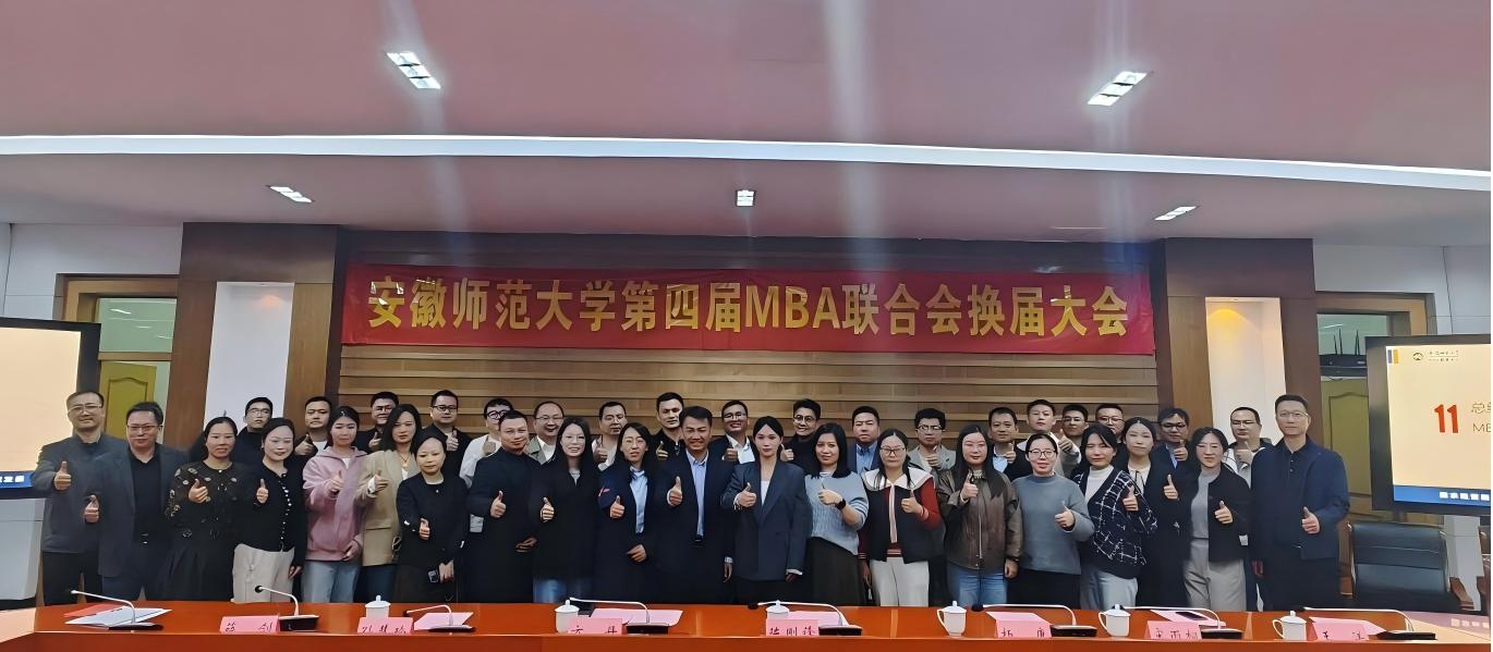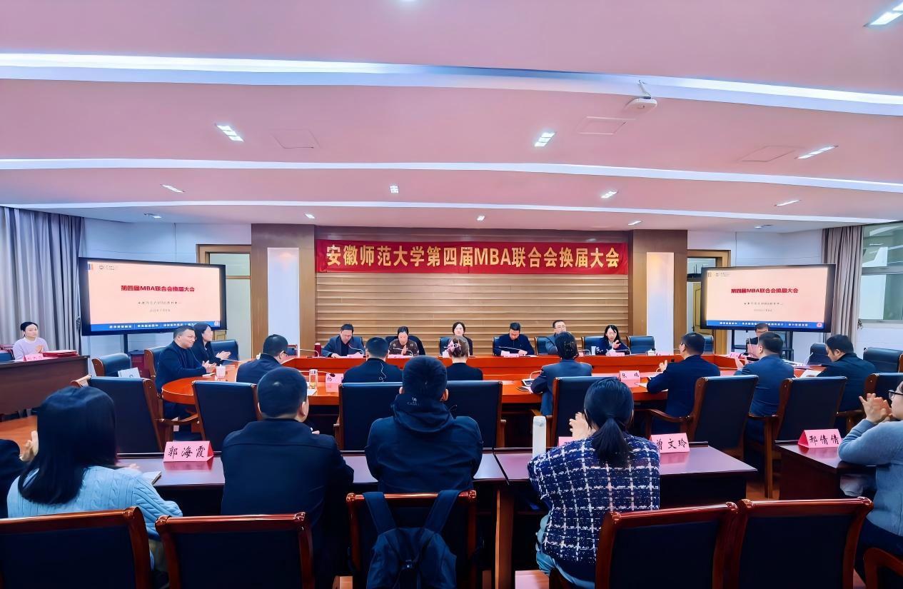 11月8日下午16:30,安徽师范大学第四届 MBA 联合会换届大会在花津校区第一会议室隆重召开。经济管理学院党委副书记陈钢锋、MBA 教育中心副主任杨康、MBA 教育中心学工负责人方丹出席会议,第二届 MBA 联合会秘书长孙慧玲、第三届联合会主席王洋及往届联合会代表,与第四届联合会全体成员共同参会。本次大会由 25 级 MBA 同学薛剑主持。