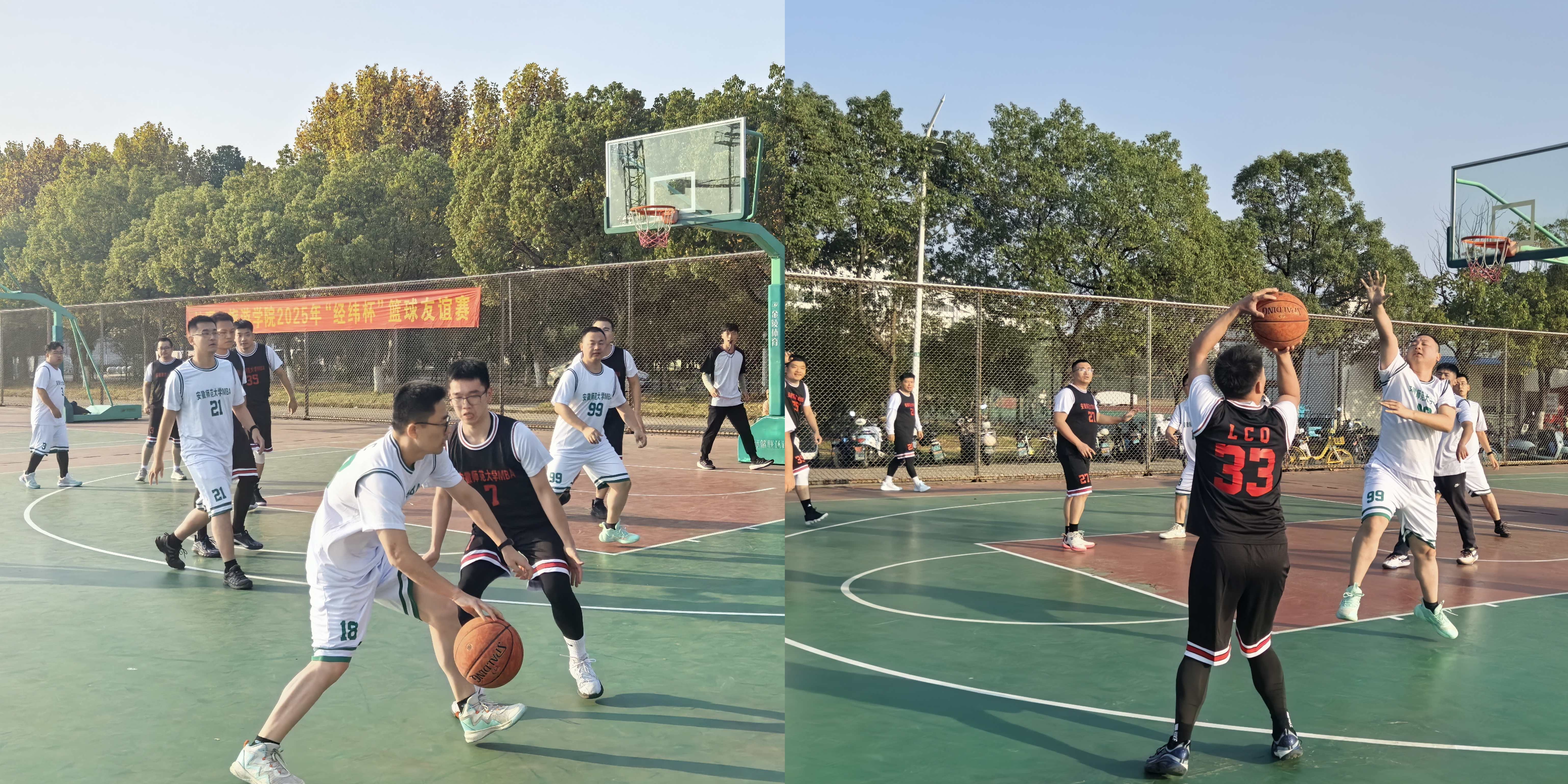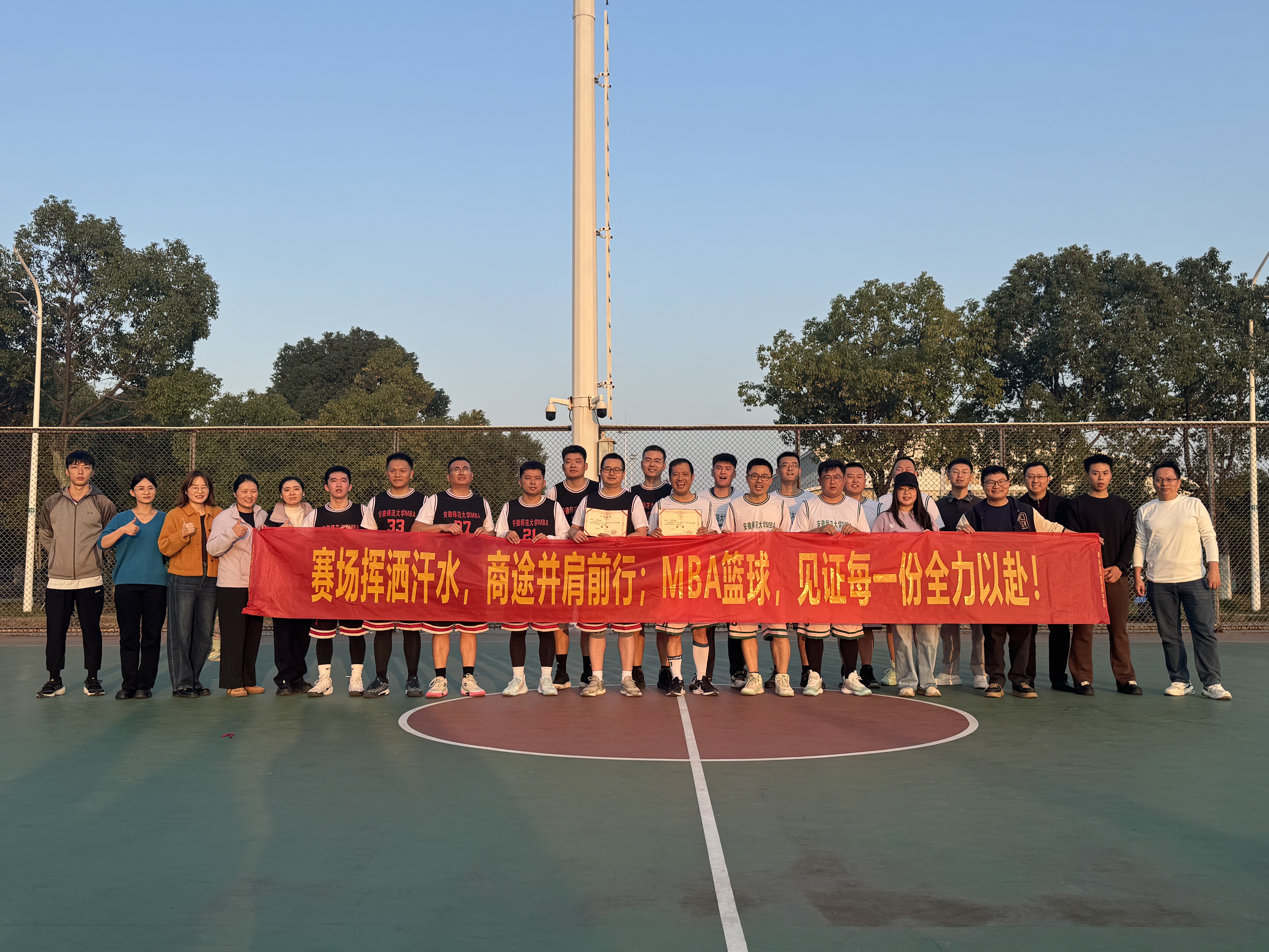 11月15日下午,晴空万里,微风携着初冬的清爽拂面而来,安徽师范大学2025级MBA班级篮球友谊赛在欢呼声中热血开赛!2025级MBA1班与2班的篮球队员们早已摩拳擦掌,利用休息时间反复推演战术、排兵布阵,只为在赛场之上展现集体风貌,为班级增光添彩。
